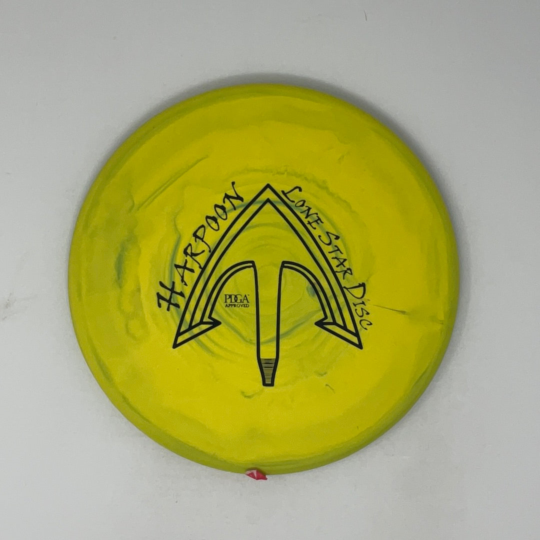 The Harpoon is an extremely consistent, versatile, and reliable midrange from Lone Star Discs. Whatever task is at hand, the Harpoon can handle it. Apply power and it will hold whatever line you put it on. Throw with “touch,” and it will fade slightly. Perfect for approach shots –on or off the tee! Forehand, backhand, or overhand–the Harpoon is ready!