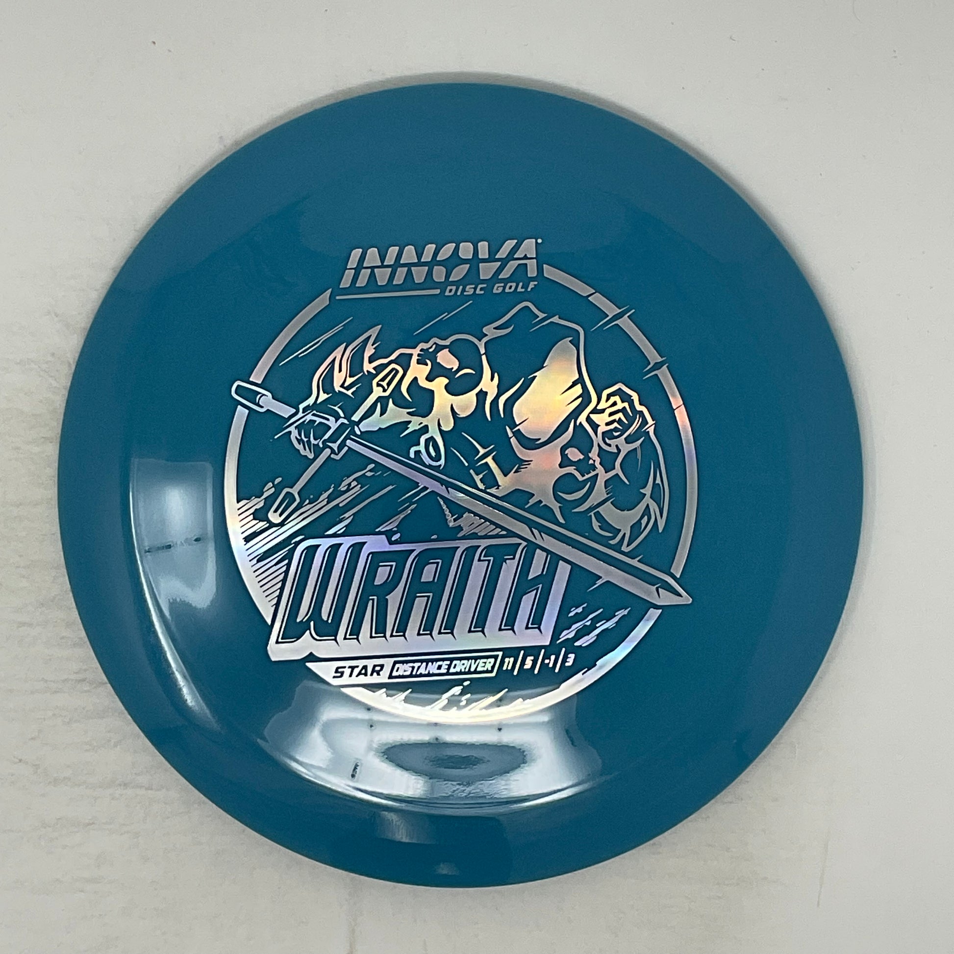The Wraith is a long stable Distance Driver with speed, glide and accuracy. This Wraith can provide great distance for players of all skill levels. It is an excellent downwind driver that also performs predictably into the wind.